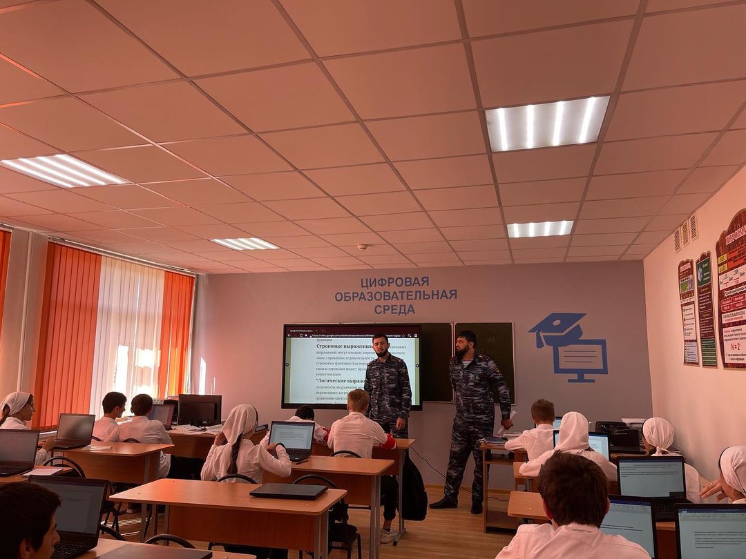 13.10.2022Сегодня, старший инспектор ОПДН Абдурзаков И.Б., и инспектор Тасаев У.В. провели профилактическую беседу с обучающимися 9-х классов МБОУ «СОШ №2 с.Чечен-Аул» на тему:"Наркомания, токсикомания и употребление ПАВ".