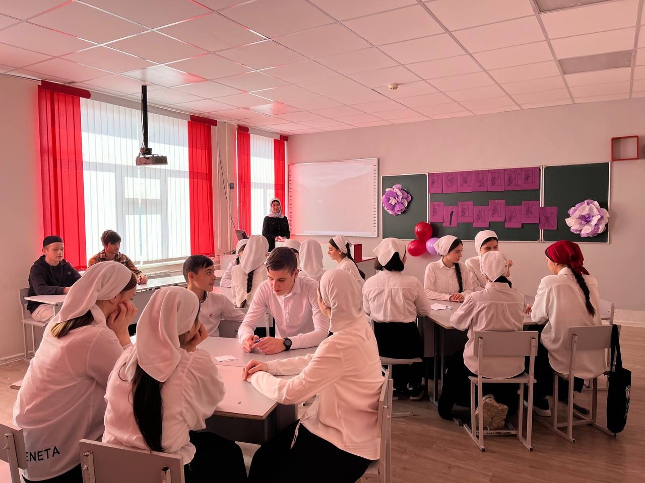 В МБОУ "СОШ 2 с. Чечен-Аул" учителем чеченского языка и литературы, было проведено мероприятие «Нохчийн г1иллакх» среди 8-ых классов.