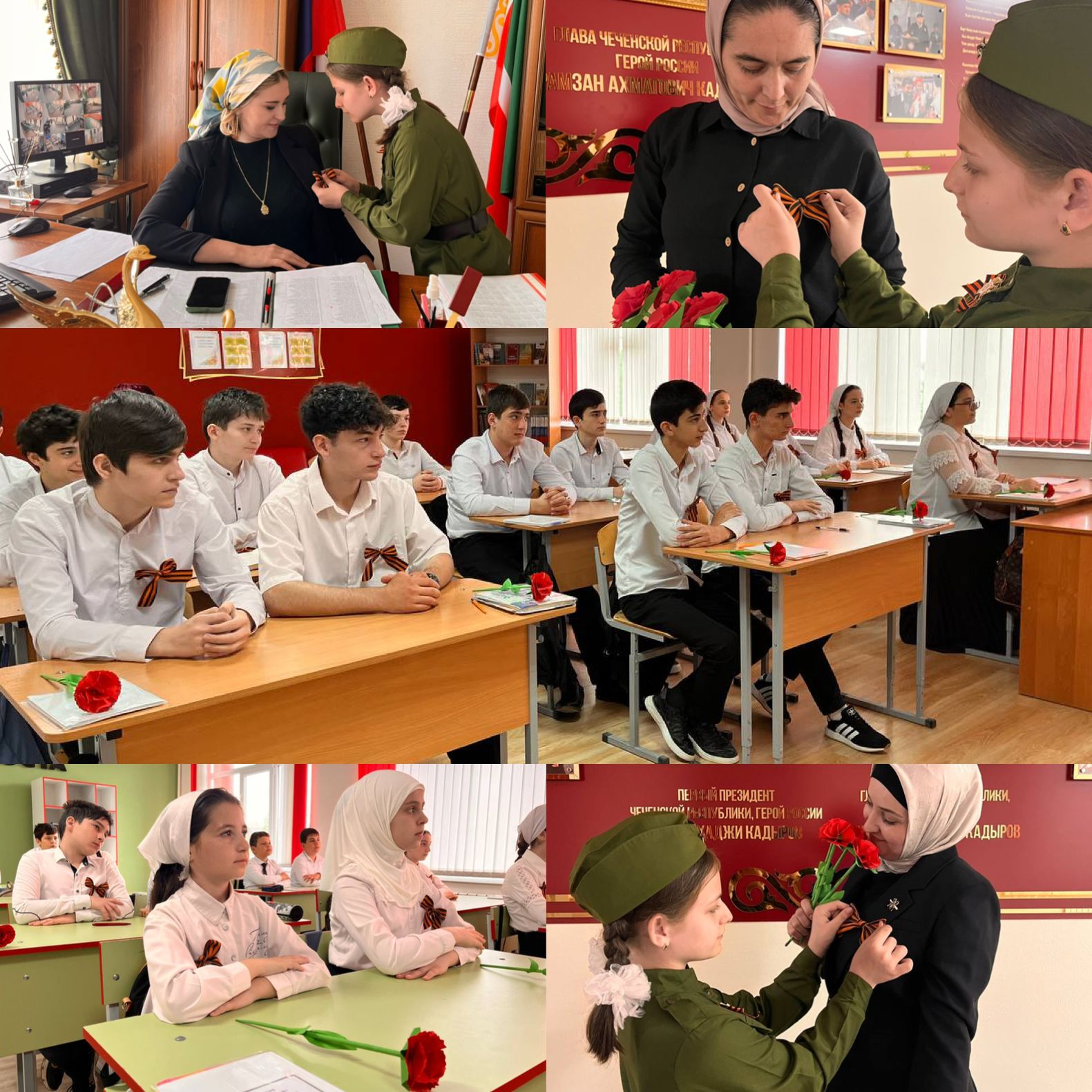 06.05.2023Гео́ргиевская ле́нточка — общественная акция по раздаче символических ленточек. Проходит с 2005 года С тех пор акция стала традиционной и проводится ежегодно на средства общественных организаций, предприятий и государственного бюджета, с 24 апреля по 12 мая. В 2008 году Георгиевские ленточки распространялись в более чем 30 странах, а к 2009 году было распространено более 50 миллионов ленточек по всему миру. В рамках реализации федерального проекта «Успех каждого ребенка» нацпроекта «Образование» в МБОУ «СОШ № 2 с.Чечен-Аул» 3 мая 2023г. прошла акция «Георгиевская лента» цель которой была формирование у граждан патриотических ценностей, уважительного отношения к Родине, ее истории и сохранение памяти о воинах, погибших при защите Отечества.Социальный педагог Габиева Малика подготовила ленточки, сделала совместно с детьми бумажные гвоздики и вместе с маленькими солдатиками раздали их педагогам и учащимся.«За последние несколько лет значение символа георгиевской ленты стало шире: если раньше этот символ был связан с гордостью за Победу в Великой Отечественной войне, то сегодня этот символ означает доблесть всех защитников Отечества»,- отметила соц.педагог школы Габиева Малика