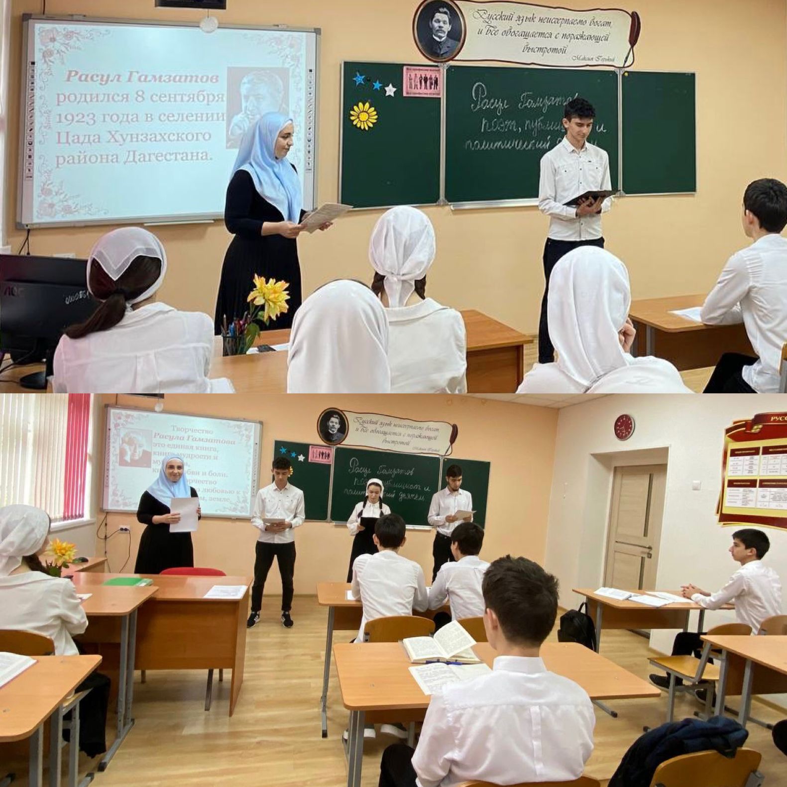 В МБОУ «СОШ № 2 с.Чечен-Аул» 02.05.2023г. прошло мероприятие приуроченное ко дню столетия Расула Гамзатова