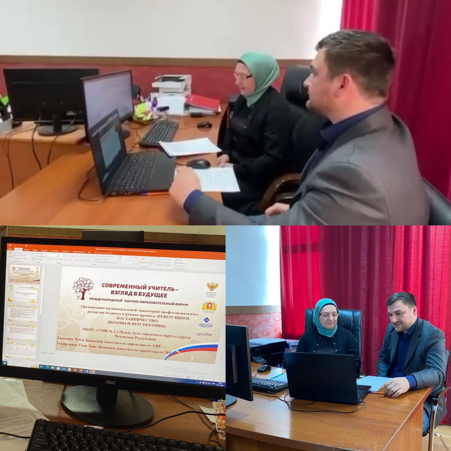 16.11.2023Заместитель директора по УВР Гиназова Л.Х. и заместитель директора по МР Гемирханов У.Х-Э. МБОУ «СОШ 2 с.Чечен-Аул» выступили с докладом на международном научно-образовательном форуме «Современный учитель - взгляд в будущее» инициатором которого был Уральский Государственный Педагогоческий Университет г. Екатеринбург.Участниками форума стали педагоги из городов Ульяновск, Тюмень, Севастополь, также Свердловская область, Карачаево-Черкесская Республика и другие.Основной мыслью доклада была идея организации реверсивного наставничества в школе и организация индивидуальной траектории профессионального развития педагога. Докладчики рассказали о том, что для решения поставленной задачи и были организованы наставнические пары по модели « Учитель-учитель», которая подразумевает обоюдное сотрудничество, при котором каждый выполняет роль и наставника и подопечного.