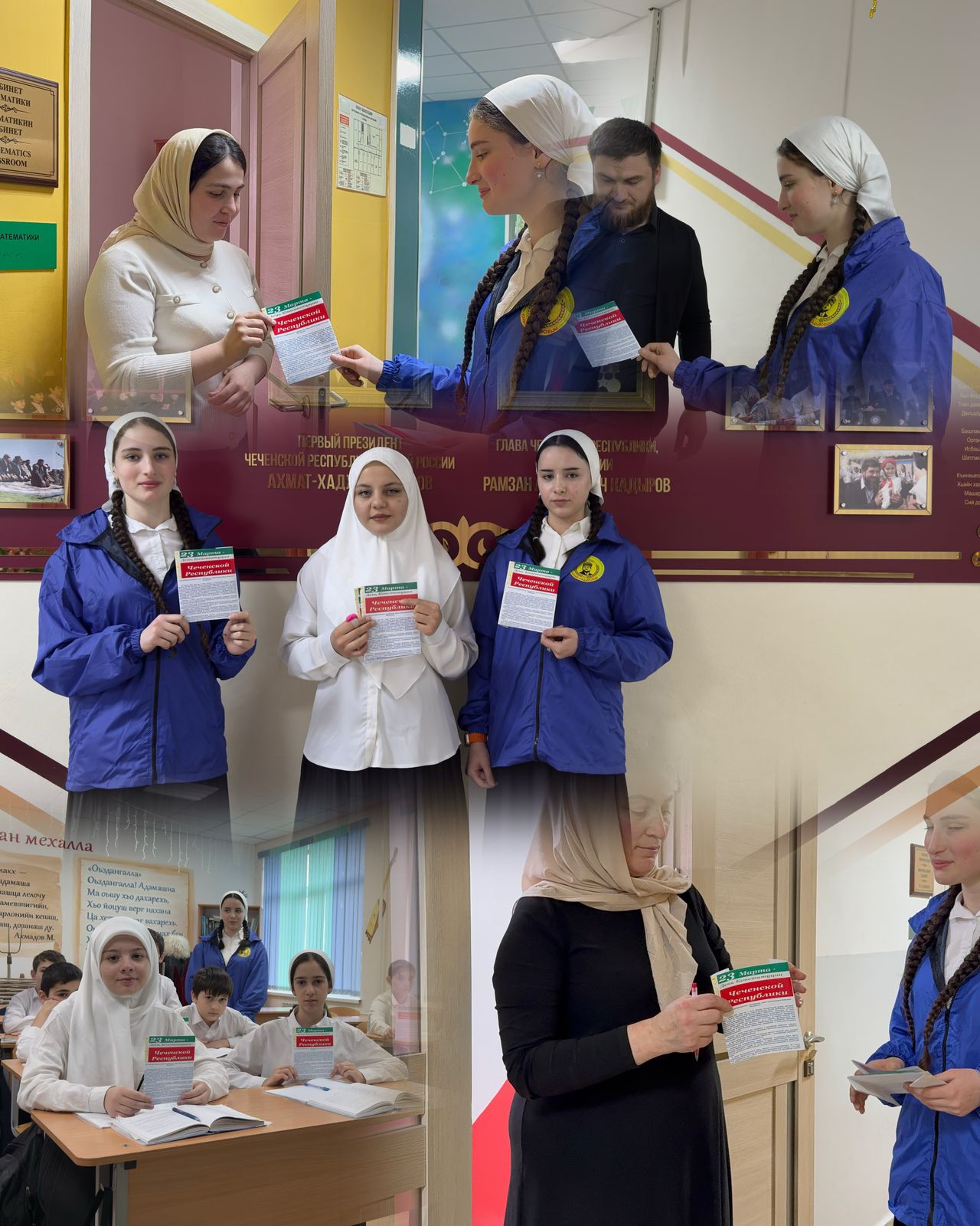 📌Учащиеся раздали буклеты с информацией о государственных символах Чеченской Республики и текстом гимна Республики ученикам и педагогам школы.