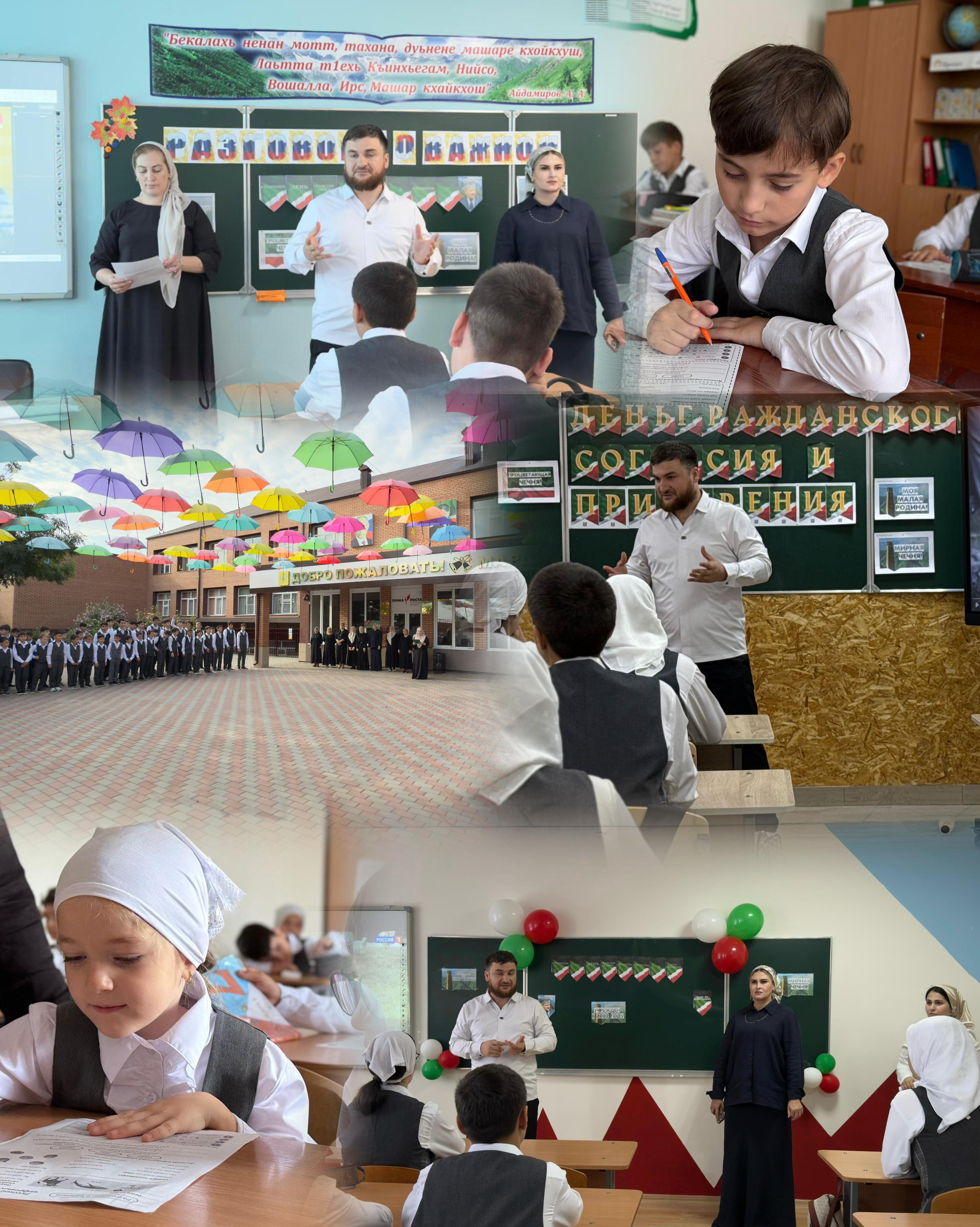 После церемонии прошли внеурочные занятия «Разговоры о важном» обсудили значимые даты и ценности, такие как День гражданского согласия и единения — Дня Чеченской Республики, который мы отмечаем 6 сентября.